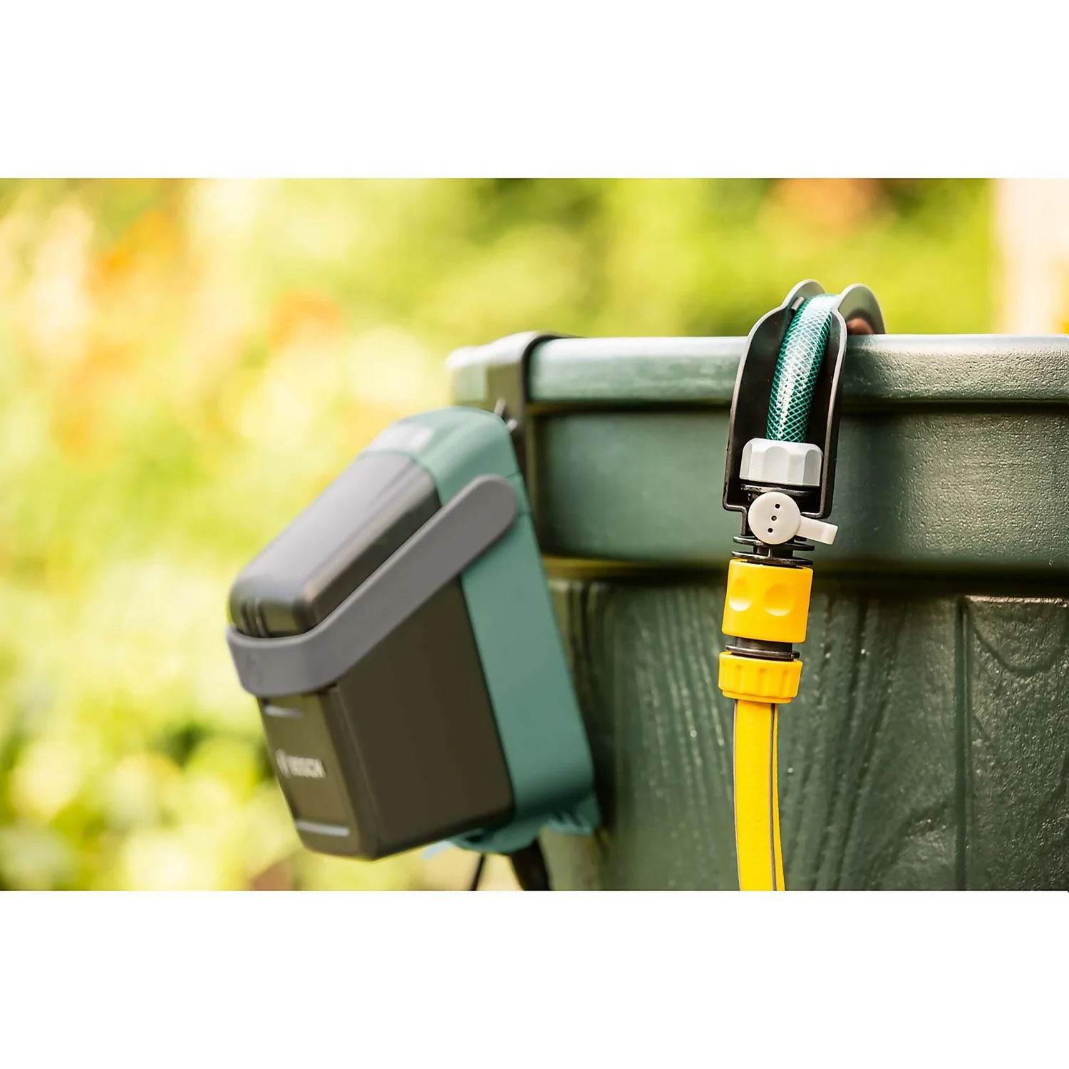 The Bosch GardenPump 18 is a pump which allows for fast and cordless garden watering from a rainwater tank. The universal connector means you can connect the pump to the hose and the carry handle while the primary switch ensures the product cannot be used with the battery compartment open.
