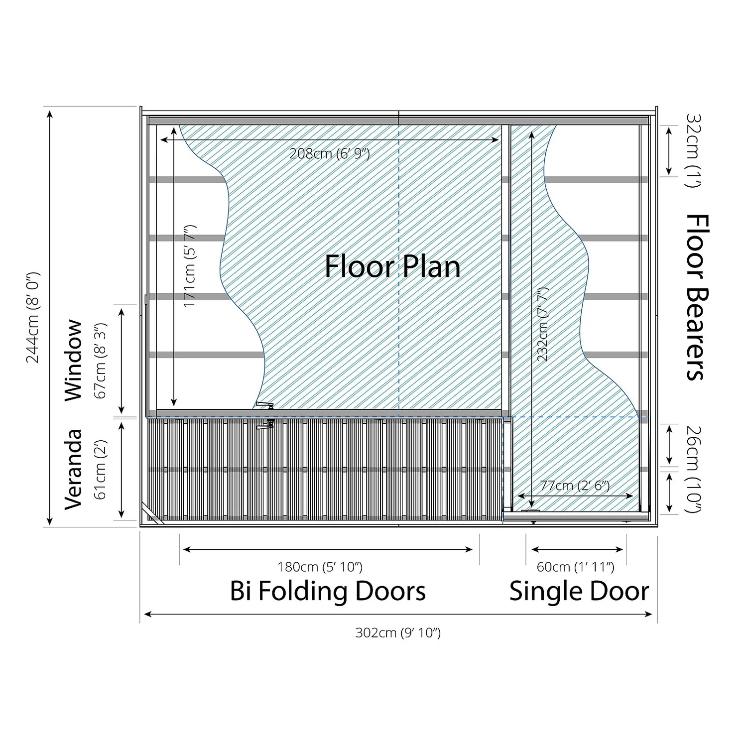 Featuring bi-folding doors and an elegant veranda, this building is great for those looking for somewhere stylish to relax, unwind and enjoy uninterrupted views of the garden with the benefit of an additional storage area. Premium tongue and groove boards make up the walls, floor and roof of this premium summerhouse. Complete with thick wooden framing to support the cladding internally, this building offers a rigid and long-lasting structure perfect for years of enjoyment. Please note that this is a bespoke garden building created just for you. Therefore, once the building has been painted, we cannot accept a cancellation or a return of the order. If a fault occurs within your building please don’t worry. We will rectify this inline with our normal terms and conditions.