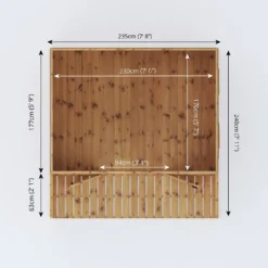 The tuxford is a spacious and stylish summerhouse that offers the perfect spot to sit back and relax during the summer months. Three large styrene glazed windows allow light to flood the interior and styrene glazed French doors open out onto the sheltered veranda, creating a light, airy and welcoming space to enjoy. The walls, roof and floor are constructed from premium tongue and groove cladding. Complete with thick wooden framing to support the cladding internally, this building offers a rigid and long-lasting structure, for you to enjoy for many years to come.