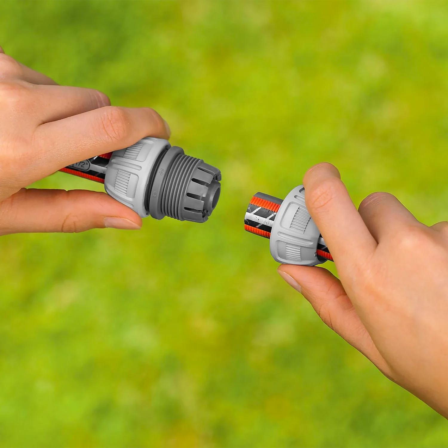 Using the GARDENA hose repairer, hoses can be quickly and easily repaired without tools. The damaged part of the hose is simply cut out and the GARDENA hose repairer is inserted.