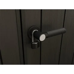 The Newton shed represents a true breakthrough in shed design, fusing elegant aesthetics with true functionality, the sizable Newton 7×11 shed is a modern classic in the making. It looks and feels like a natural wooden shed, but thanks to its use of cutting-edge Evotech+ materials, its walls are highly durable, weather-resistant and maintenance-free, giving you a shed that will never rust, rot, or peel. The wide double entry door provides for easy access and has a stainless steel internal locking mechanism for added security and peace of mind and with a steel-reinforced double-wall frame the Newton can withstand rainstorms and snowstorms keeping your tools, furniture and equipment protected no matter what nature throws at it. A heavy-duty floor panel will keep mud and rainwater off your rider mower.