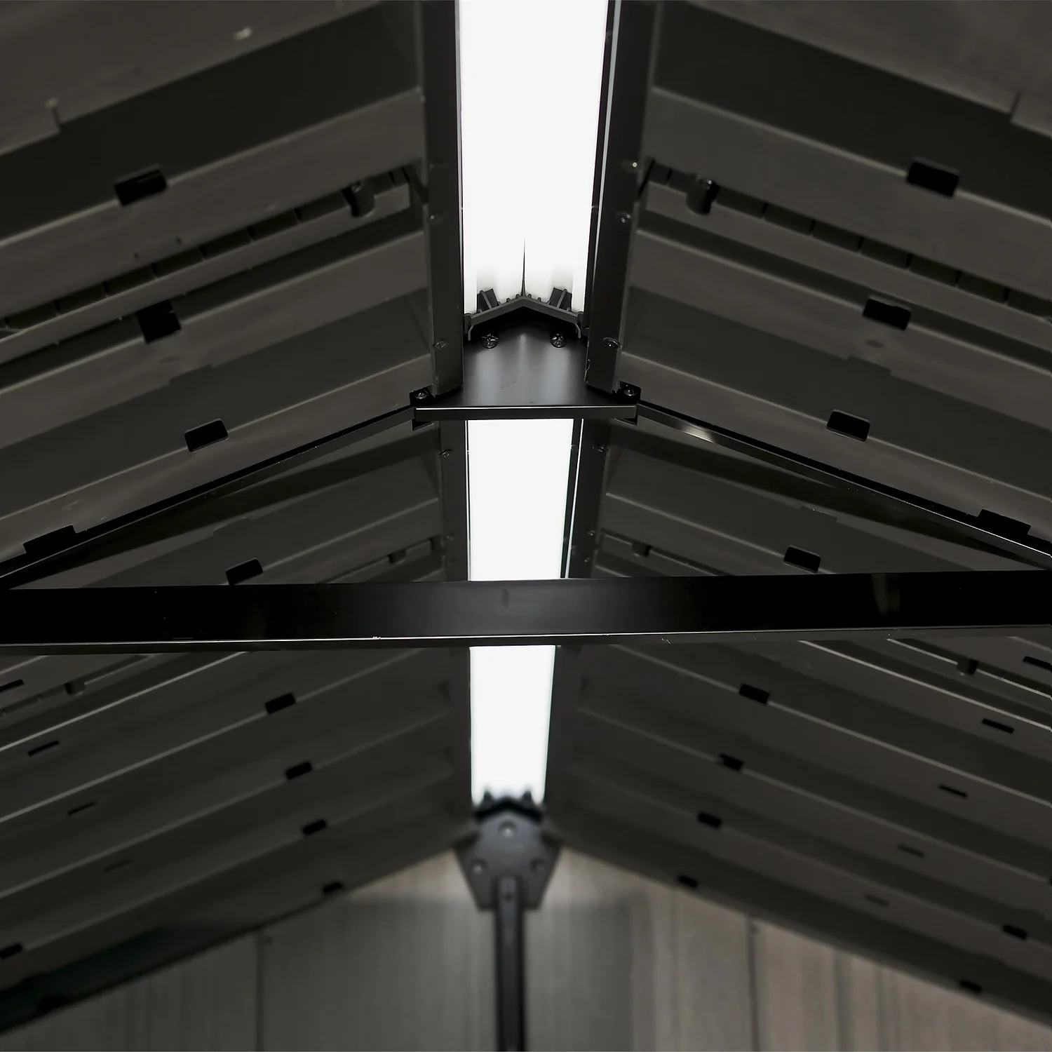 The shed benefits a high ceiling to allow an adult to easily move around inside, specialist duotech walls that enables you to customise due to its paintable walls, wide double doors for easy access and a skylight and a Victorian-style window. Built to last, with a double wall, steel reinforced, weather-resistant construction the Oakland 1175 also features a heavy-duty floor that is strong enough to support heavy items such as lawnmowers and a strong roof that can support snow loads of up to 100 kg/sq.m.