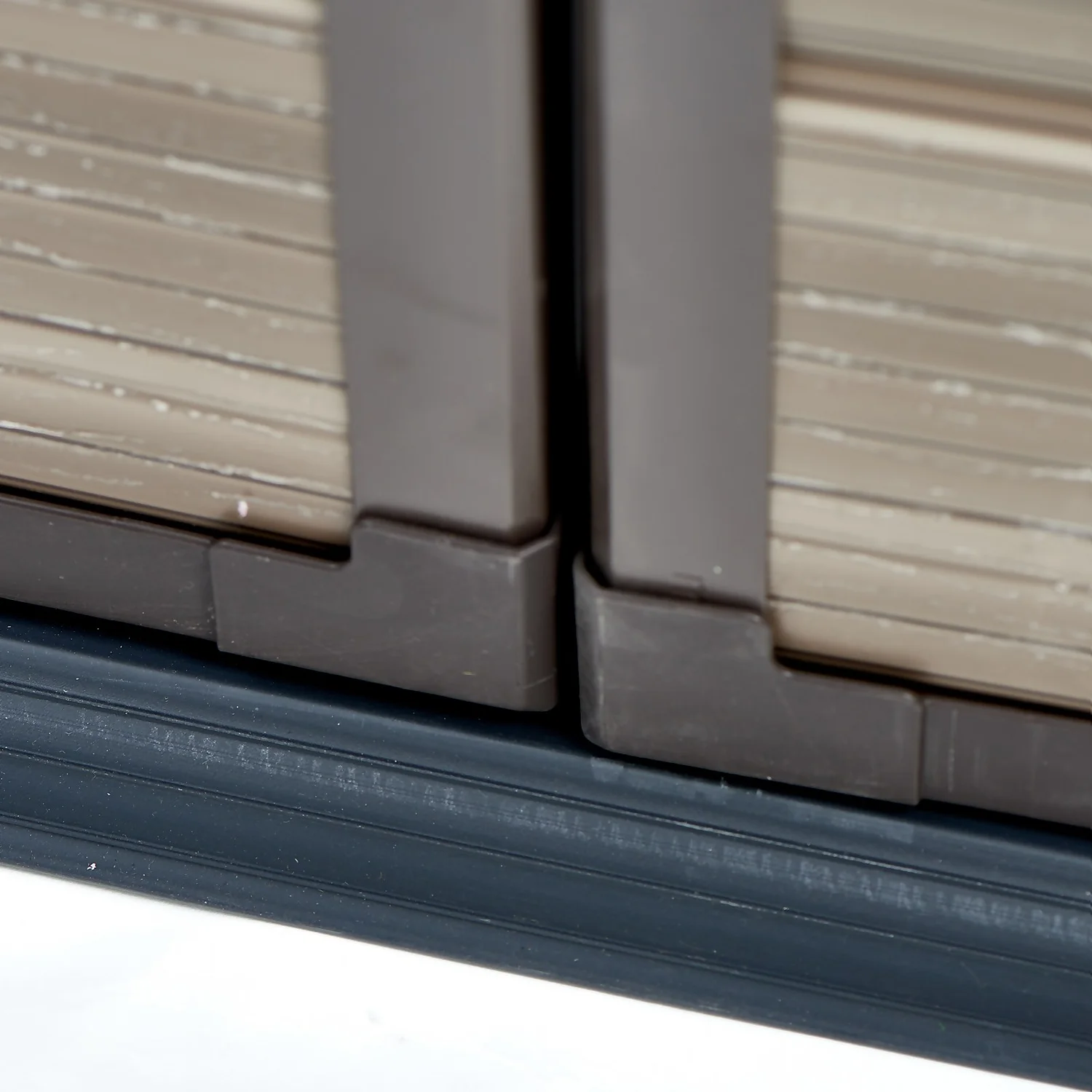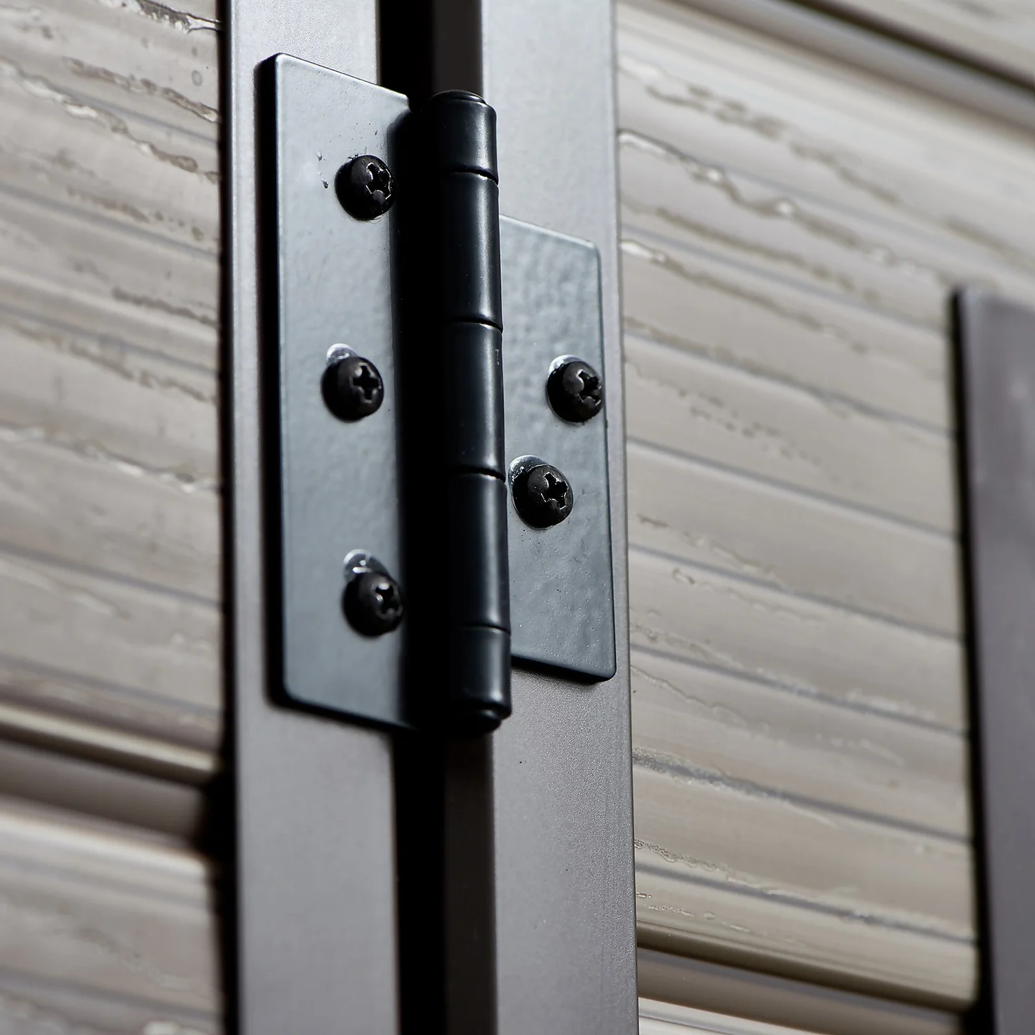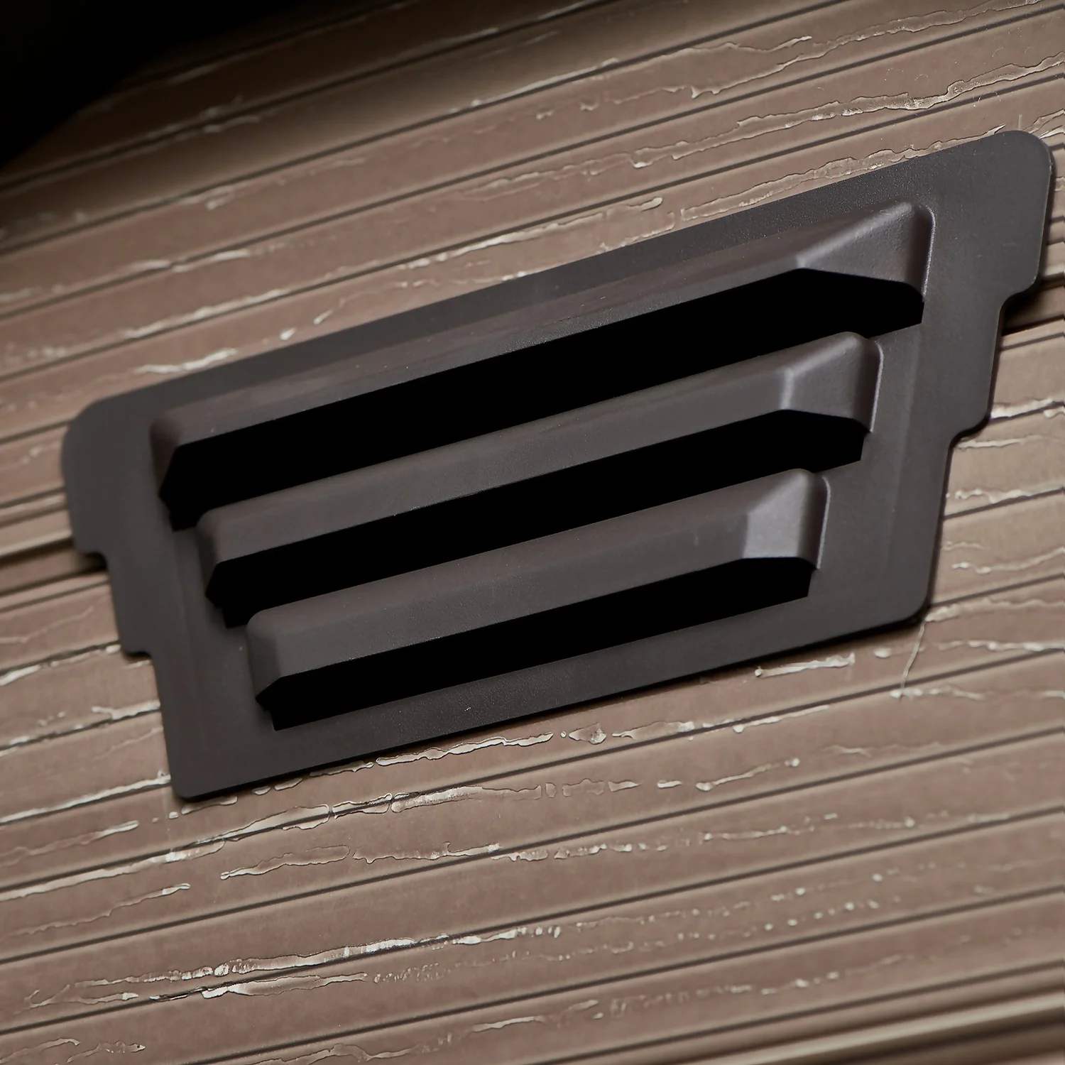 - Elegant wood affect exterior with double doors, plus ventilation ducts for air circulation