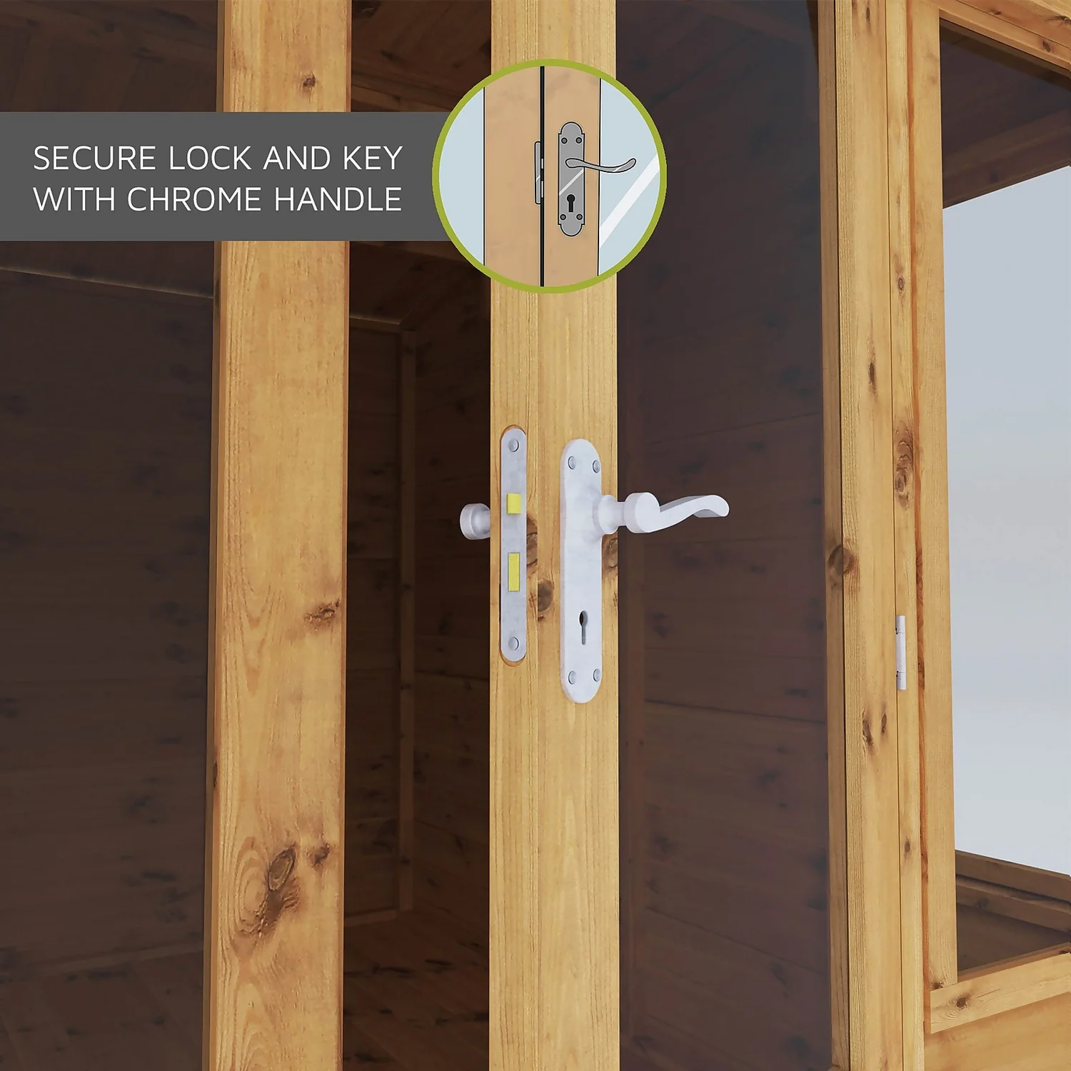 The walls of this summerhouse are constructed using premium horizontal interlocking tongue and groove boards with a shiplap profile. The shiplap profile includes a protective and aesthetically pleasing lip to create a strong, weatherproof panel. Complete with thick wooden framing to support the cladding internally, this building offers a rigid and long-lasting structure.