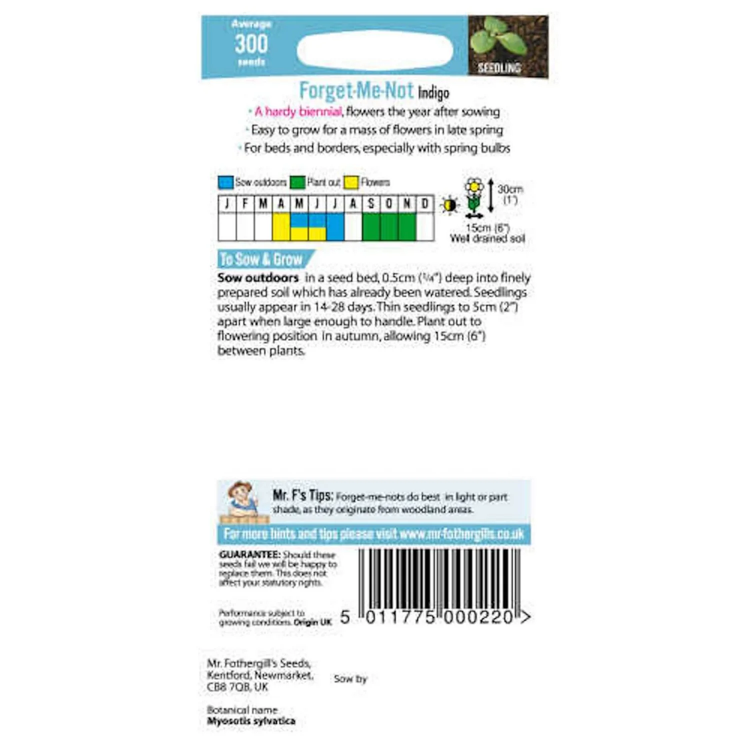 Forget Me Not Indigo (Myosotis sylvatica) is easy to grow for a mass of flowers in late spring. Great amongst spring bulbs in beds borders or containers.