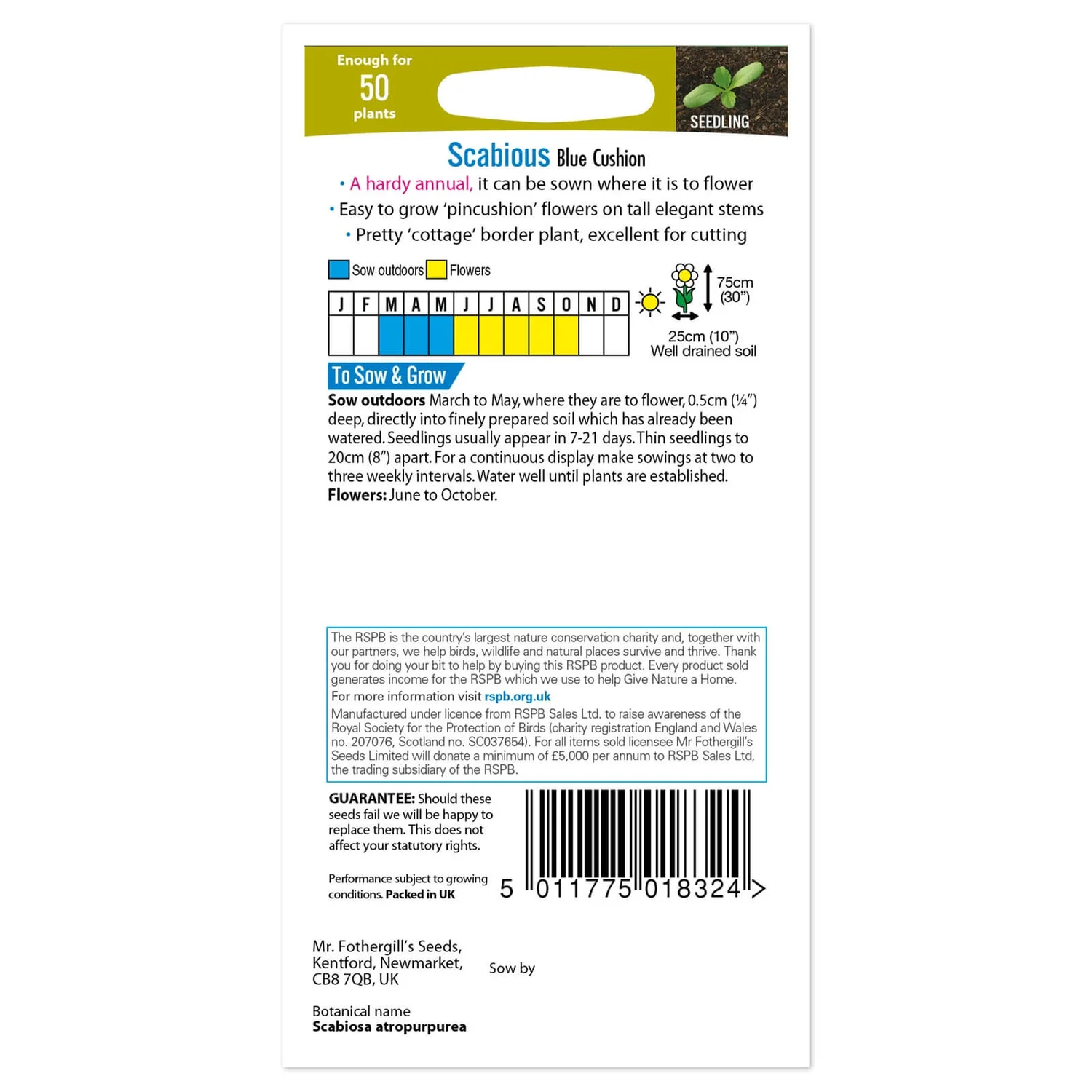 - Easy to grow ‘pincushion’ flowers on tall stems.