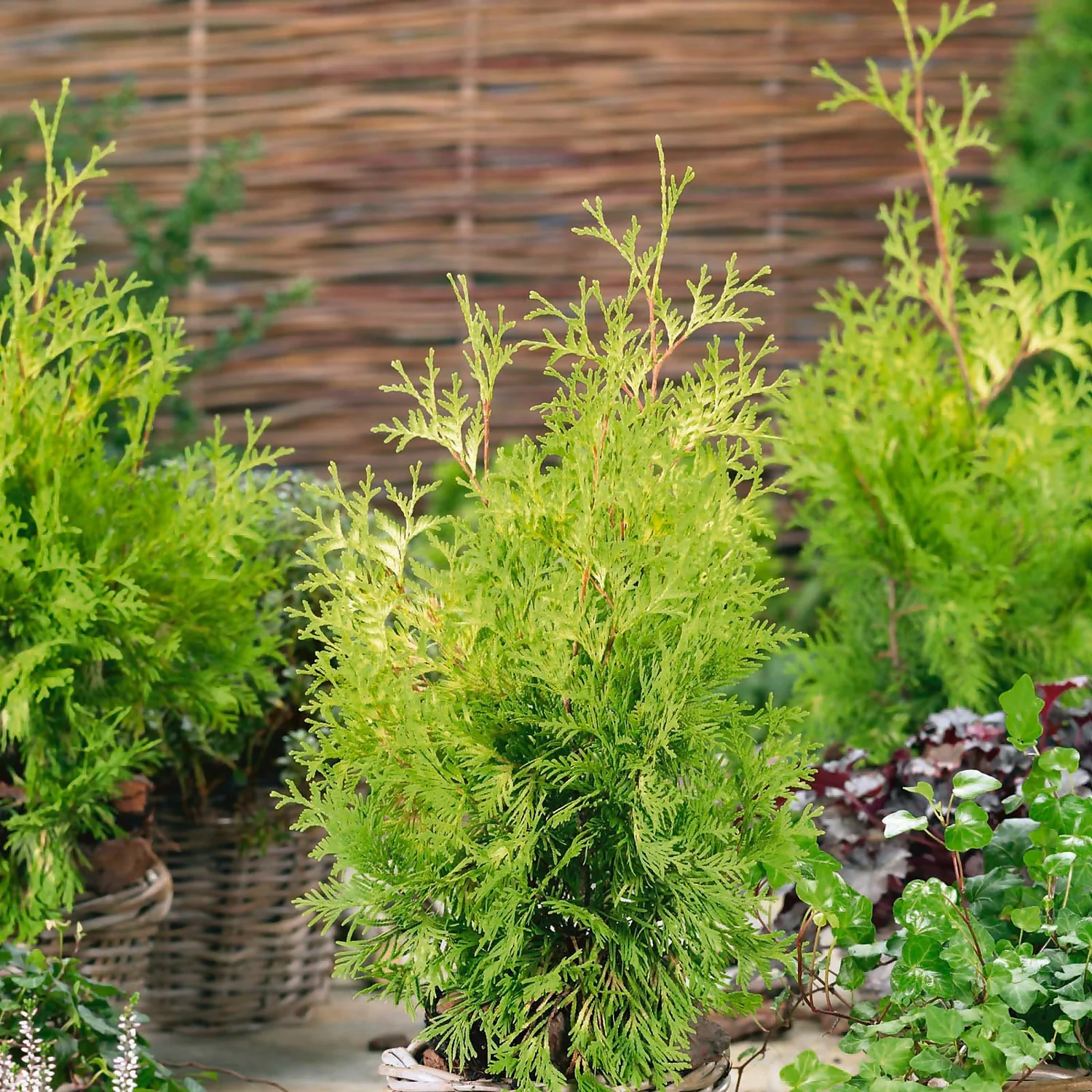 A really unusual choice to add impact to borders and containers. The lime-green, evergreen foliage turns yellow-gold at the tips and cones are borne in Spring. Easy to grow.